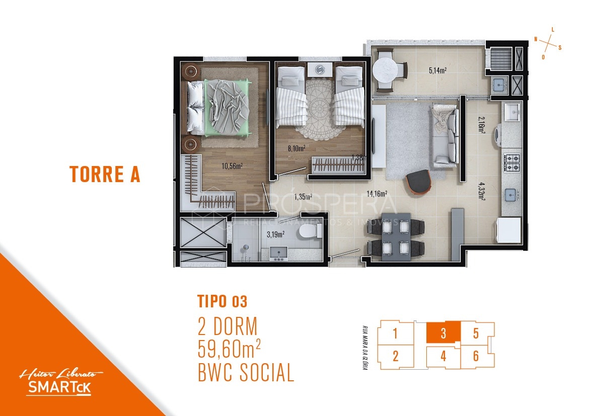 ✔ 60 m² muito bem distribuídos