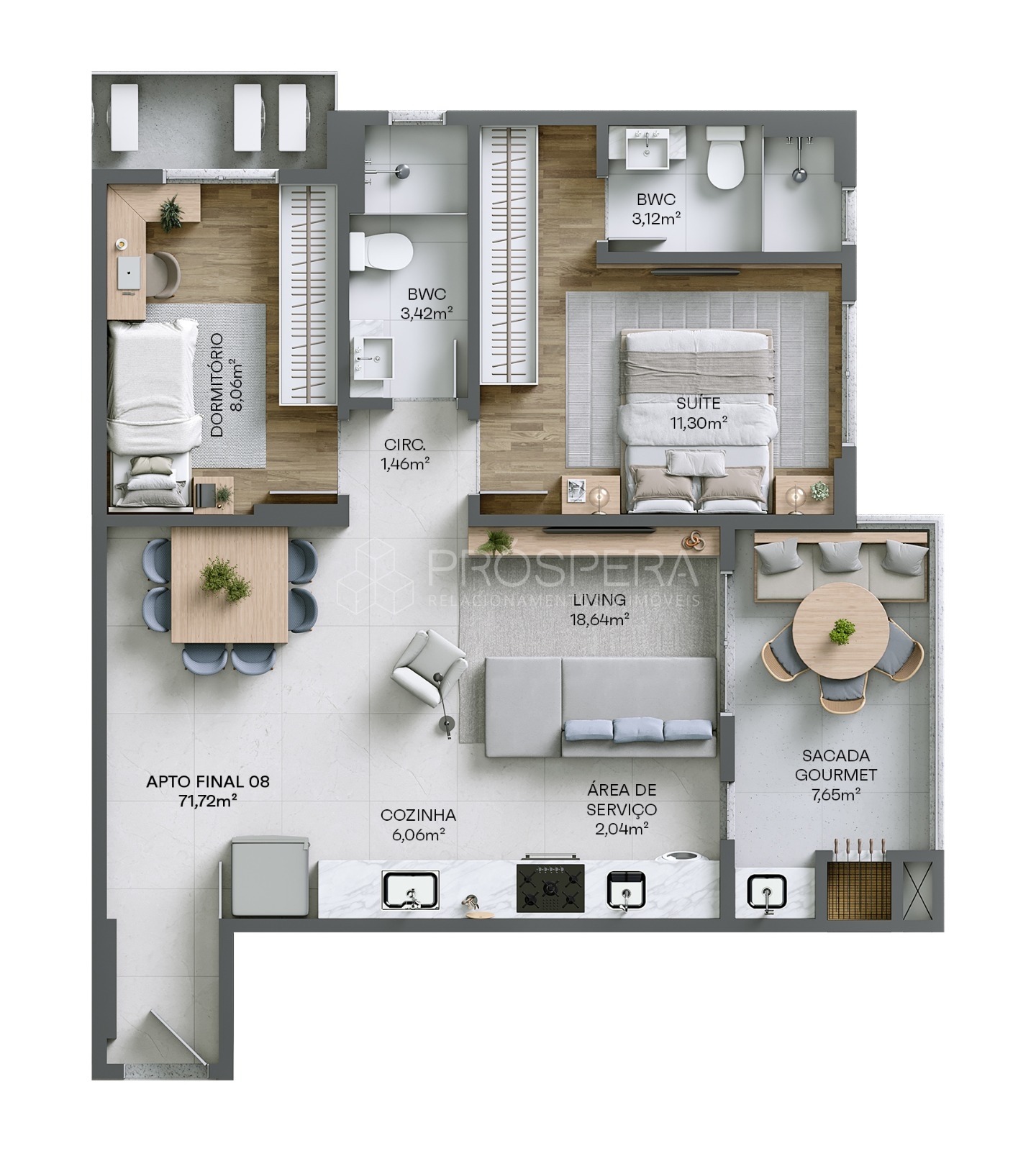 71m² privativos muito bem distribuídos